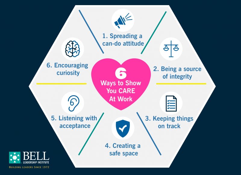 Demonstrating that you care to your colleagues and everyone around the office ensures positive, effective work relationships. Using these six approaches, we become a better leader in our workplace.